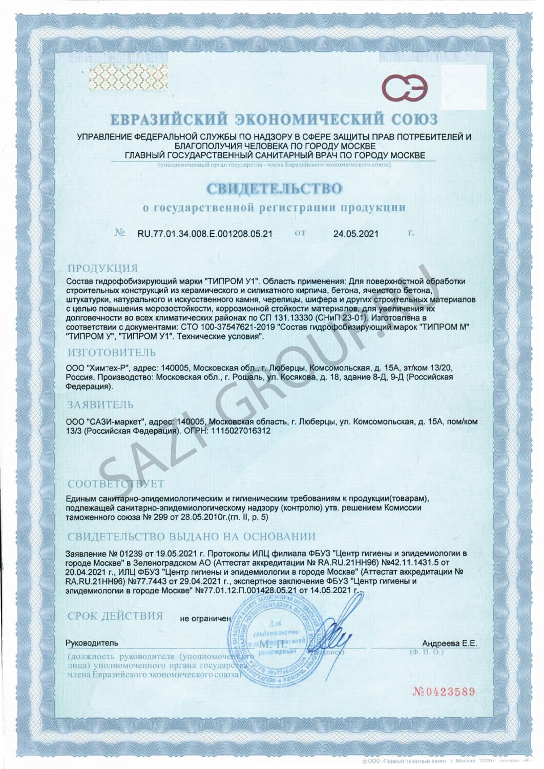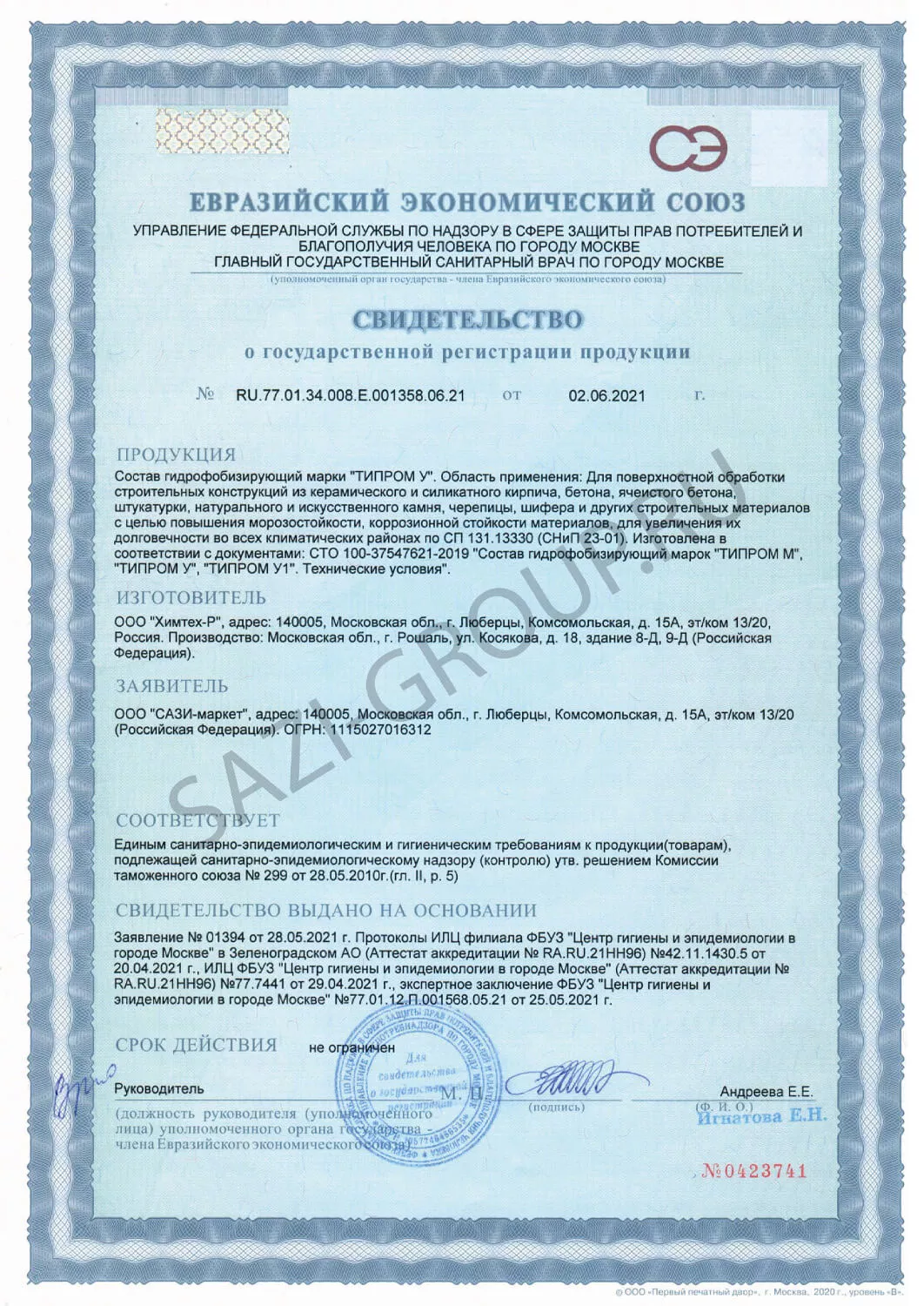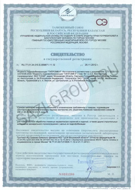 После высыхания, через 24-48 часов, для защиты фасадов от атмосферной влаги и связанных с этим повторных высолов, рекомендуется провести обработку поверхности гидрофобизирующими составами серии "ТИПРОМ®" в соответствии с инструкциями по работе с указанными материалами.