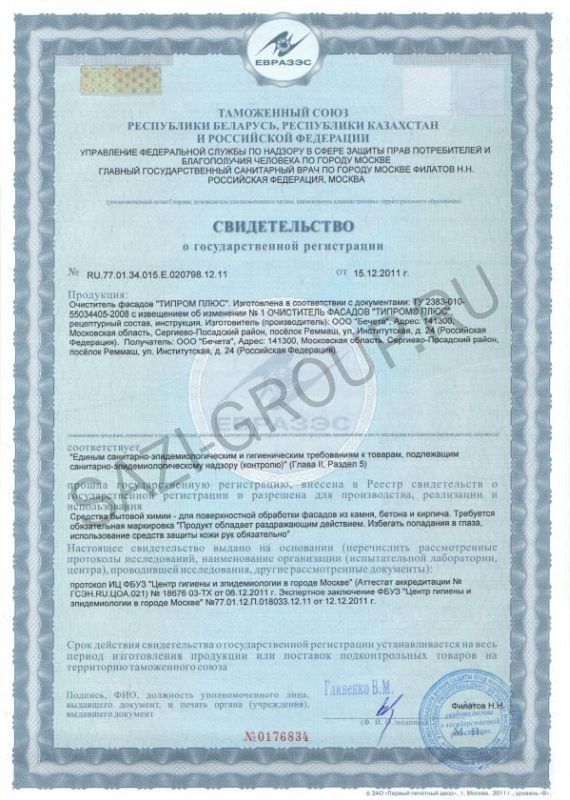 Определение эффективности работы очистителя необходимо начинать с концентрированной формы, в дальнейшем, с целью экономии, его можно развести с водой в соотношении от 1:2 до 1:5 (в зависимости от количества высолов на обрабатываемой поверхности).